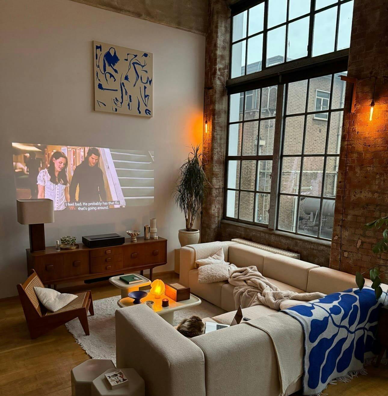 Skieruj projektor w miejsce, w którym chcesz oglądać, naciśnij „play” — i gotowe! Twój pokój natychmiast się zmieni.
