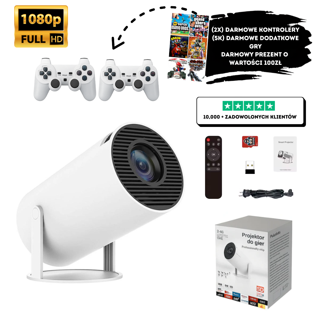 Retro Rzutnik™ przywraca magię Twojego dzieciństwa dzięki ponad 20 000 kultowych gier z ponad 10 klasycznych konsol, perfekcyjnie zoptymalizowanych do wbudowanego projektora HD.